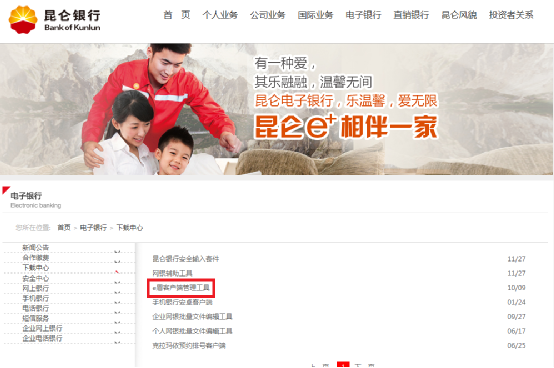 答:如您需安装e盾驱动程序,您可参照下列方案操作: 方案一:请您将e盾插入电脑,正常连接后电脑会弹出“自动播放”,请您点击“运行”,系统将自动安装驱动程序。如系统未弹出“自动播放”,您可以手动打开宝石花标志的盘符,手动安装e盾驱动程序。 方案二:下载并安装“e盾客户端管理工具”。 1.请您点击以下快捷链接,进入下载中心,下载“e盾客户端管理工具”。(http://www.klb.com.cn/kunlbank/489405/489815/index.html) 2.请根据您的e盾类别下载对应的客户端管理工具。建议您将安装文件的压缩包保存到“桌面”以方便查找。 3.请您解压并安装“e盾客户端管理工具”。 4.请您打开“客户端管理工具”。 5.请您选择“证书”,点击“注册证书”。 |